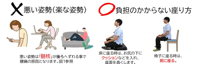 現代の生活ではデスクワークやスマホなど前かがみや猫背の姿勢、動作が多くみられます。下記のように腰に負担がかかっています!