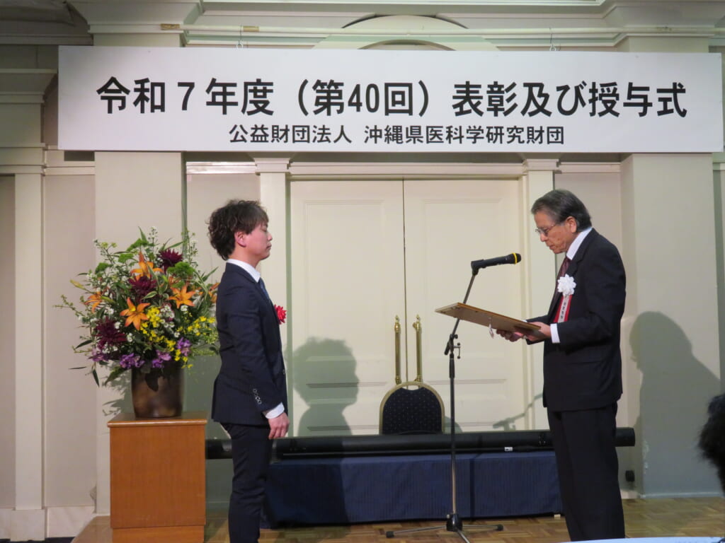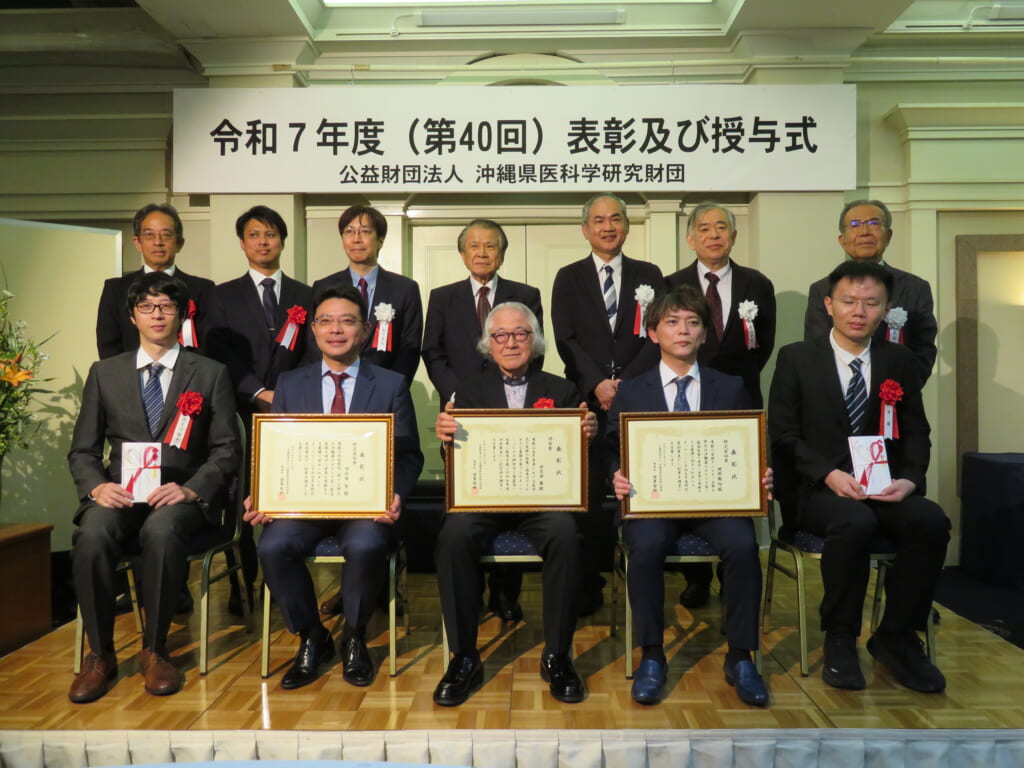 2026年2月16日、県内の医学と医療の進歩に貢献した功労者を顕彰する沖縄県医科学研究財団の2025年度表彰・授与式が開催され、当院小児科部長の崎原医師が受賞しました。