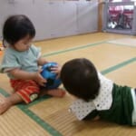 朝のおやつを済ませると、ひょっこり太陽さんが、かおを覗かせていたので、室内遊びから、園庭に変更しました。