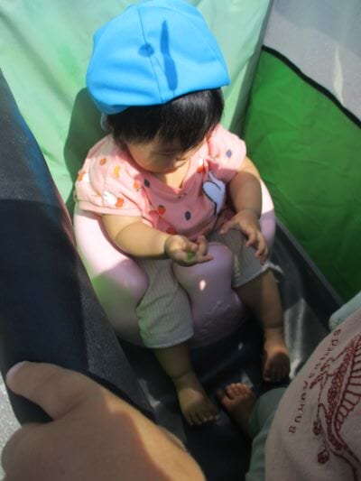 Kちゃんは、バンボに座り、
