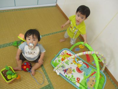 お友達同士、お互いに興味津々でちょっと距離を保ちながも一緒に遊んでいまーす😀