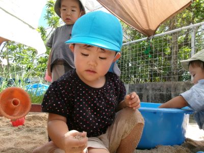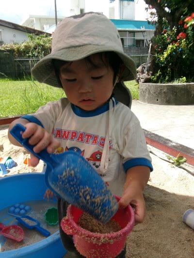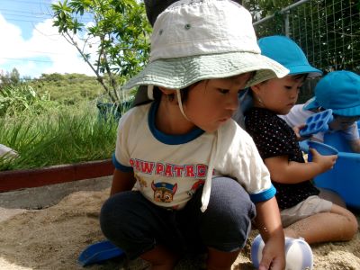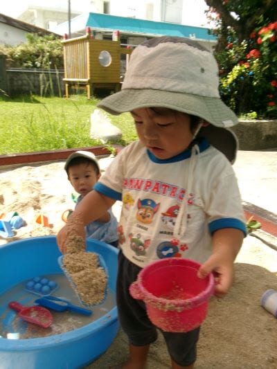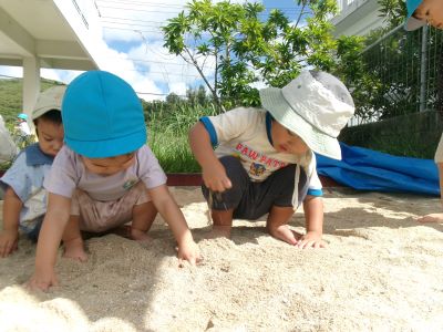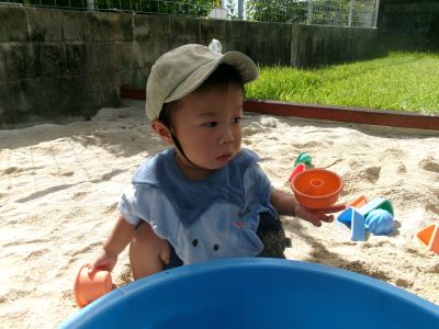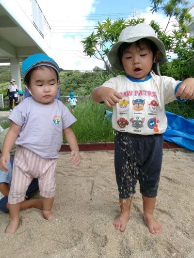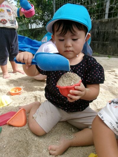 最近は、砂場遊びが大好きなつき組さん!!型抜きやスコップ、カップを使ってままごと遊び等を楽しんでいます🥰また、砂場に行くと「終わりたくないよ~😫😥」と泣いてしまうほど好きなようです😊