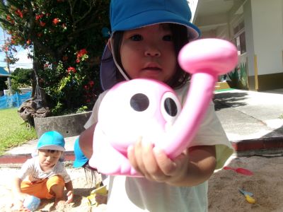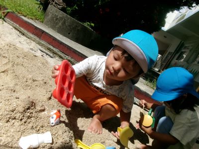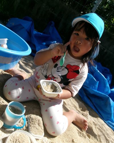 今週は、天候にも恵まれ戸外あそびが沢山できました❣ ほし組さん大好きな砂遊びの様子を紹介します(^^♪