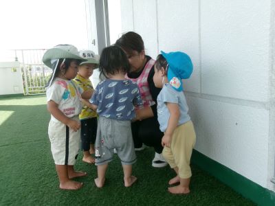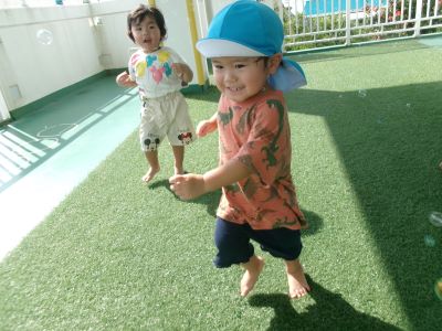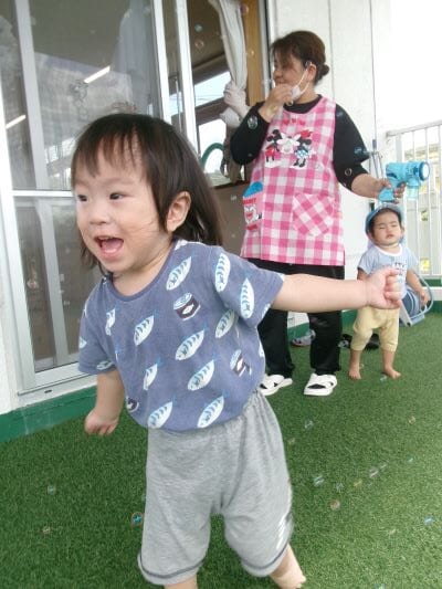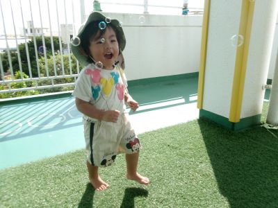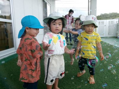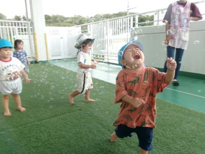 つき組さんは、ベランダ遊びをしました🥰久しぶりにシャボン玉をすると大喜び♫とてもかわいい写真が沢山撮れたので紹介します(*^▽^*)