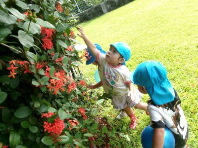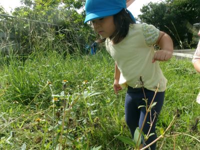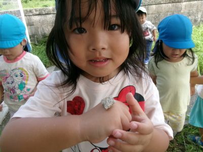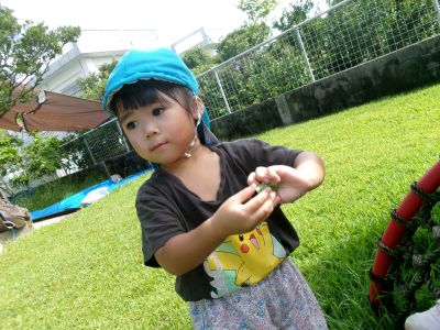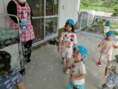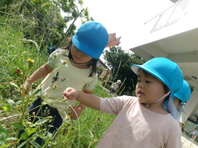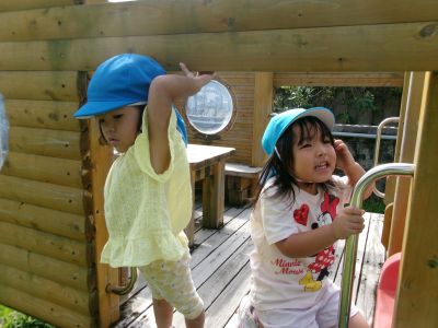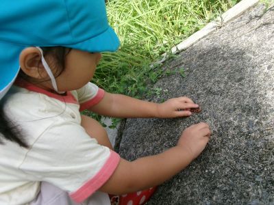 暑さも和らぎ、軒下で遊んだ後は、「えんていに行きた~い」と言ってくるほし組の子ども達❣