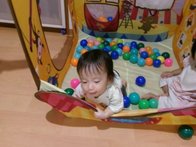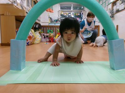 手作りトンネルやコンビカー、一本橋、ボールテントもあり子ども達は思い思いに遊んでいます(*^-^*)