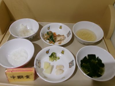 中期食:おかゆ、ブロッコリー、じゃがいも、だし煮