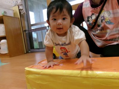 室内で運動遊び(^^♪お山が出ると早速ごそごそと上がってきました!
