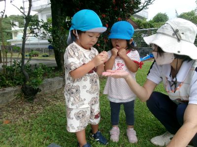 園庭が前日に草刈りや庭の整理が行われ、とても遊びやすくきれいになっていました!子ども達も大喜び!!Hさん、Nさんありがとうございました!