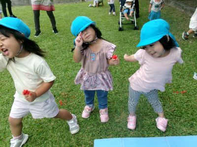 見つけた木の実を友達と見せ合いながら、「これかわいいね」と会話を弾ませる姿もありました。