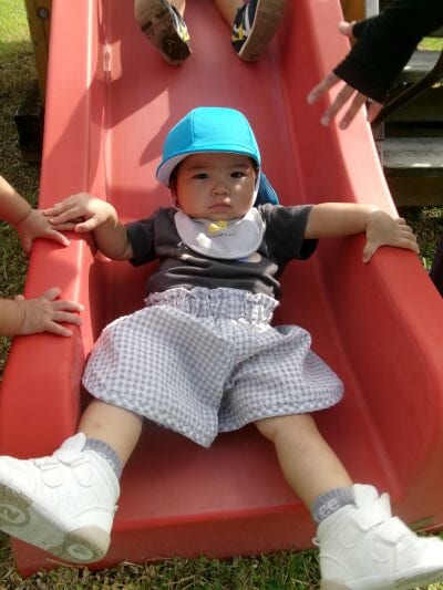 よいしょ💦よいしょ💦と遊具に上るKちゃん(^^♪
