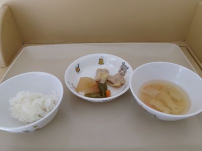 幼児食:ごはん、鶏肉の塩麴焼き、大根の炒め煮、みそ汁