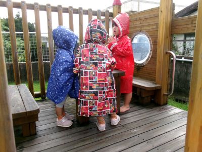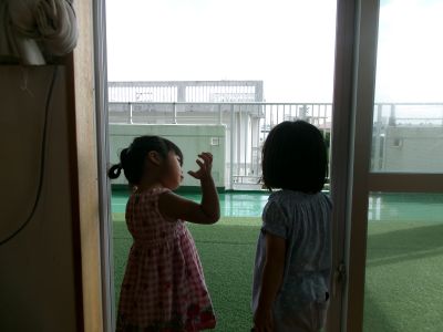 「雨降ってるね~」と話す子どもたちの姿に先生たちも思わず笑ってしまいました😆