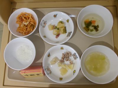 幼児食:ナポリタンスパゲッティ、ジャーマンポテト、コンソメ汁