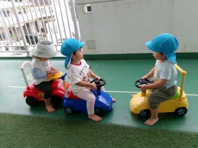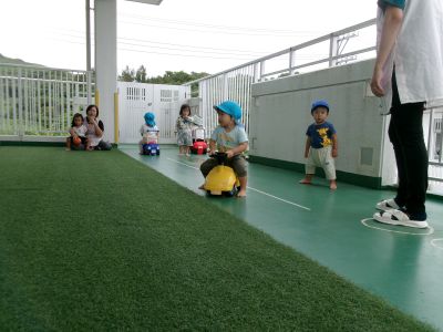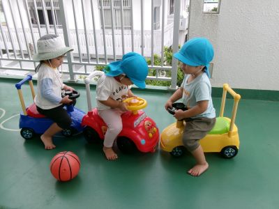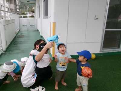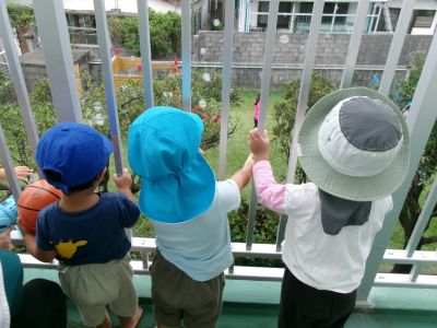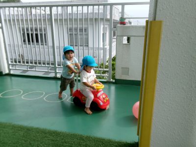 こんにちは!はーとらいふ保育園スタッフのIです。今日はベランダで遊ぶつきさんをお伝えします🎵