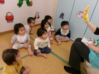 みんな手袋シアターが大好き💕真剣な眼差しも可愛いそら組さんです(*^-^*)