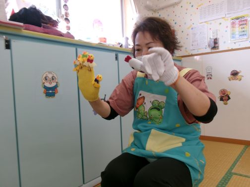 1日の始まり、朝の会はH先生の手袋シアターでスタートです🧤