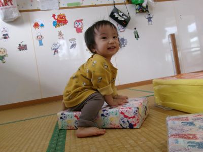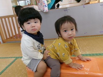 朝の会の後は~ソフト巧技台、一本橋、ボールテントや玩具遊び、音楽に合わせてダンスを楽しみました!(^^)!