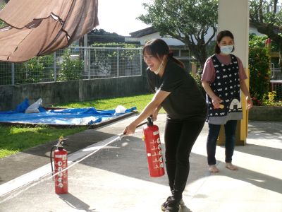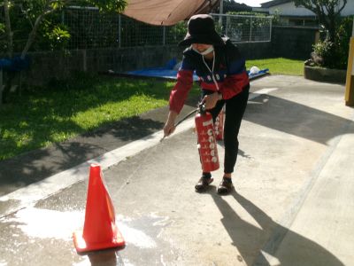 なかきた消防署にて消火器を借り、消火訓練も兼ねておこないました。