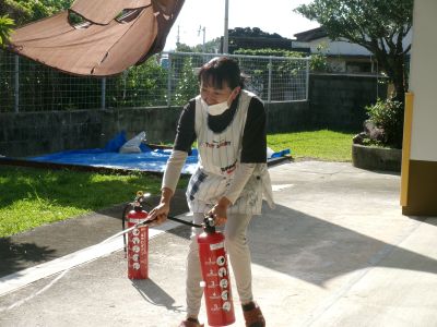 消火器の使用方法は、全職員が把握しないといけません。