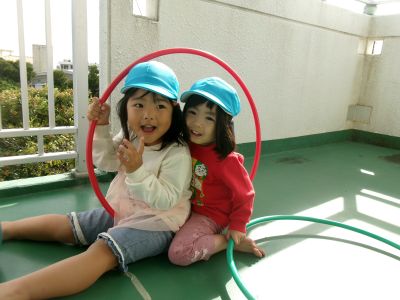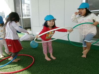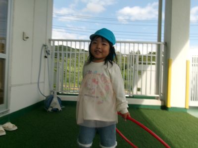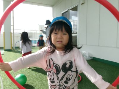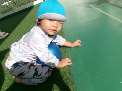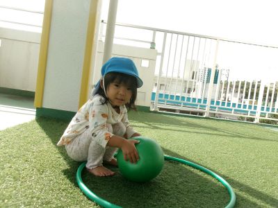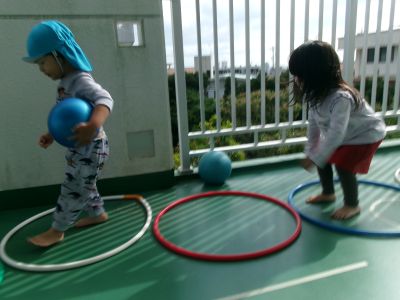 誕生会が終わった後は、ほし組さんベランダでボール、フラフープ遊びを楽しみました\(^o^)/