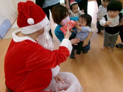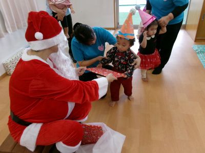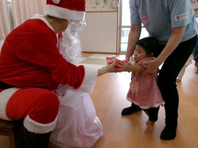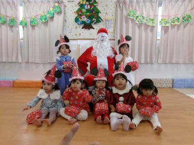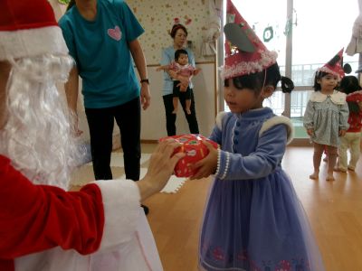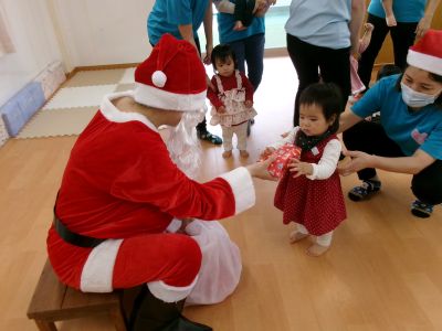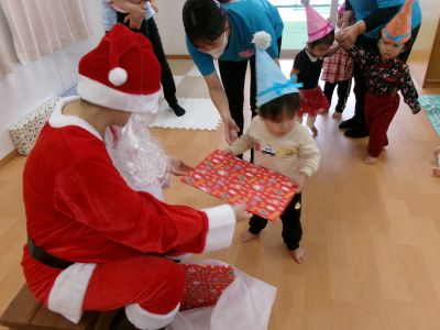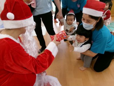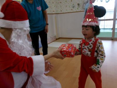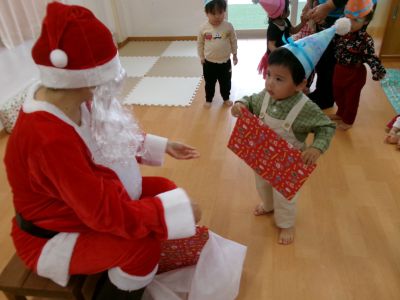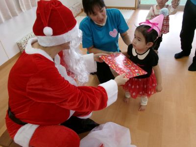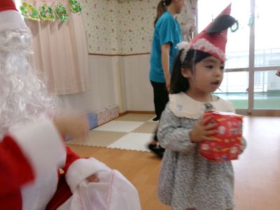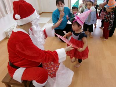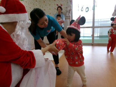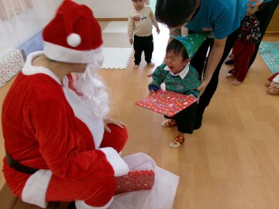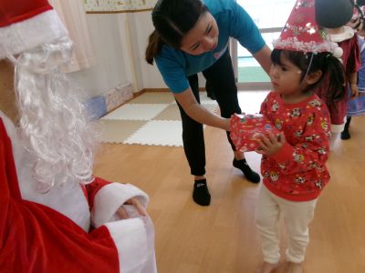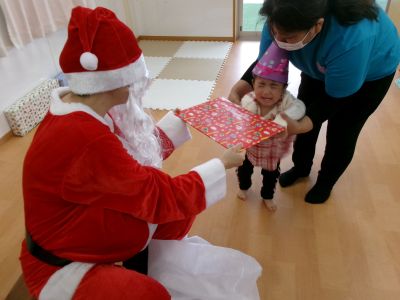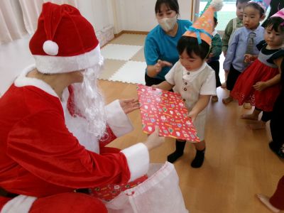 サンタさんにビックリして泣いちゃう子もいましたが、プレゼントをもらいみんな大喜びです(*^▽^*)