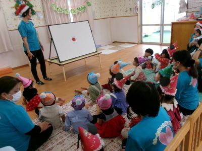 出し物では、クリスマスの紙芝居の読み聞かせや、ペープサートを使ったなぞなぞ遊びを楽しみました(*^_^*)