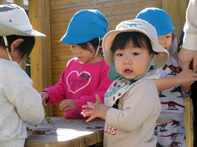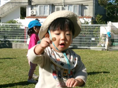 枯れ葉を拾ったり、滑り台をすべったり・・・
