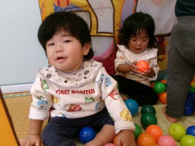ご飯まで少し時間があったのでボールテントで遊んで、大好きな美味しい食事に入りましたよ🥢🍴🥄