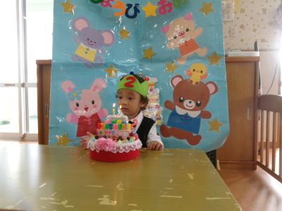先週よりインフルエンザ等で体調を崩す子が多かったので今回の誕生会は、各フロアーでお誕生会をしました(^^♪