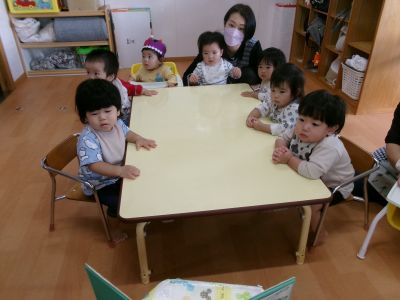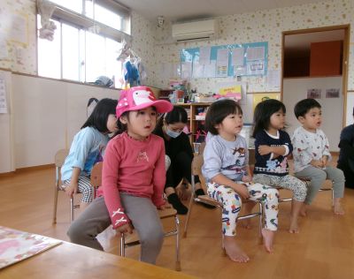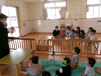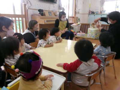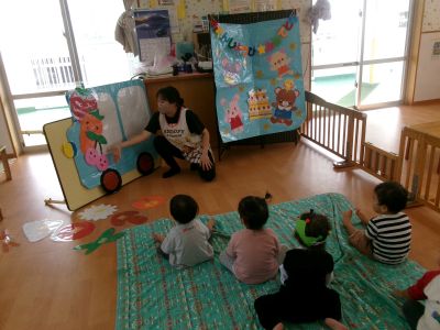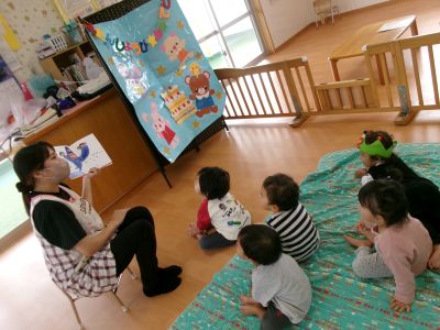 今月の誕生のお友達は3名でした❣ 保育者の出し物の絵本の読み聞かせ、ペープサートなどみんな集中して楽しんで