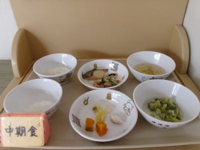 中期食:おかゆ、かぼちゃ、白菜、鰆のだし煮、ブロッコリー汁