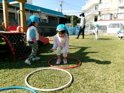 さむ~い冬から暖かい春のへのスタートです(*^▽^*) 今日のほし組さん、元気いっぱい園庭でボール、フラフープで身体を動かし楽しく過ごしました。
