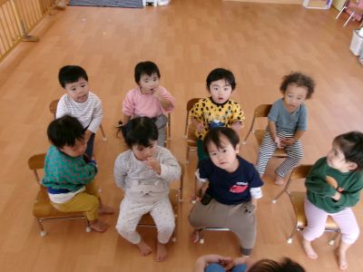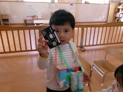 お店に入ると、こんにちは!これください、ありがとうなど言葉でのやり取りをしながらお買い物の練習をしました。子ども達とても嬉しそうにお買い物しています。その後は園庭で元気に遊びました。今日も笑顔いっぱいのつき組です🎵
