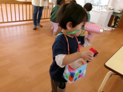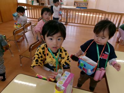こんにちは!はーとらいふ保育園スタッフのIです。今日は来週にあるお店屋さんごっこの体験をしました。