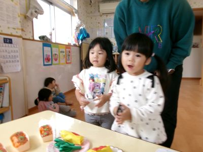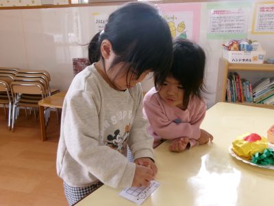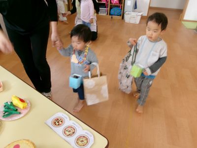 明日のお店屋さんごっこに向けて、ほし・つき組さんは、製作した商品を並べて、店員さんやお客さんになる練習をしました。「いらっしゃいませ!」、「ありがとうございました!」と少し戸惑いながらも、嬉しそうにしていました。明日は、もっと上手に出来そうですね(*^▽^*)