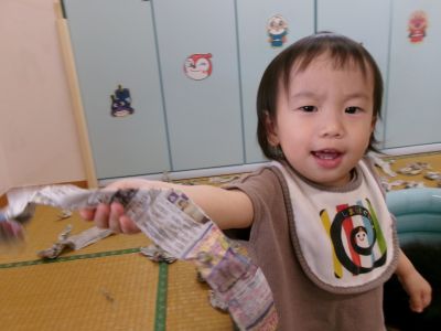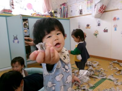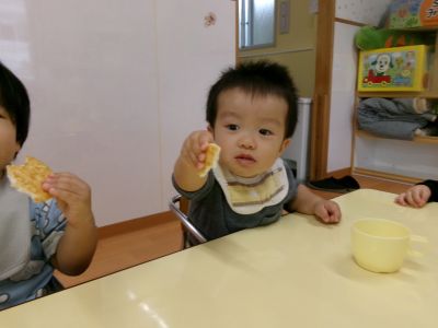 せんべいをもらって”いいでしょ~!”の顔のK君。