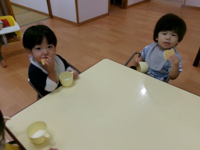 おやつの時間は、いつもおいしい笑顔の子ども達です🩷