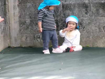 ちょっとお疲れ気味のKちゃん、Nちゃん。陰で休んでます。