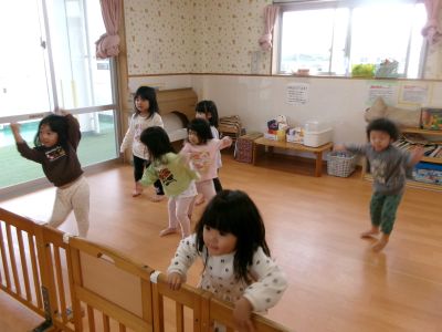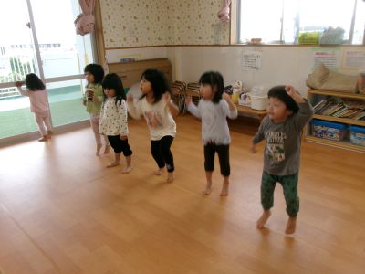 朝の会、終了後、ほし、つき組さんでダンスタイム(^^♪