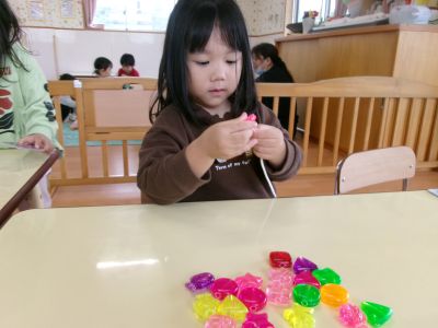 ダンス終了後は、ビーズひも通し、パズル、ブロック遊びをしました(*^▽^*)
