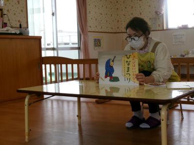 H先生がひなまつりの紙芝居を読んでくれました(*^▽^*)