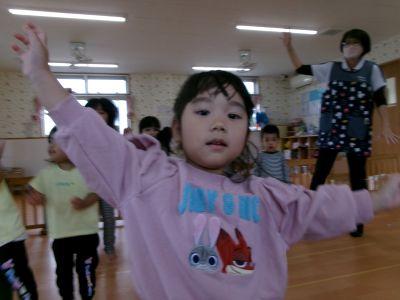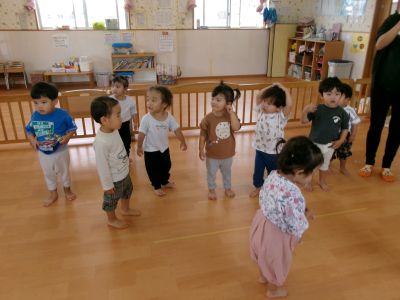 トップバッターはそら組さん💕先月から踊っていた『バナナくん体操』を披露!!リズムに合わせえて上手に踊れましたよ^~カワ(・∀・)イイ!!