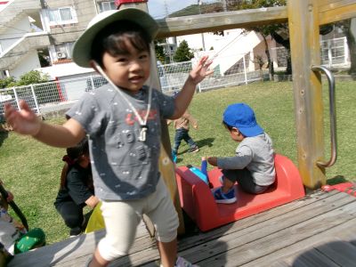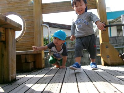 こんにちは!はーとらいふ保育園スタッフのIです。今日はぽかぽか陽気の園庭遊び日和でした。