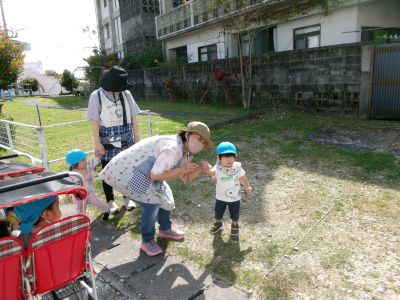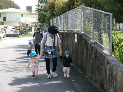 さて、乳児クラスのそらぐみさんは、近隣散歩へ出かけました。