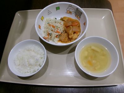 幼児食:ご飯、酢鶏、ソーメンチャンプルー、みそ汁