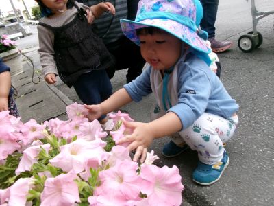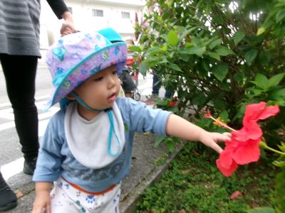 おやつを食べたらお散歩へレッツゴー(*^▽^*)園周辺のあちらこちらに草花が咲いていて、散歩途中には足を止めて見入っています🌹🌹