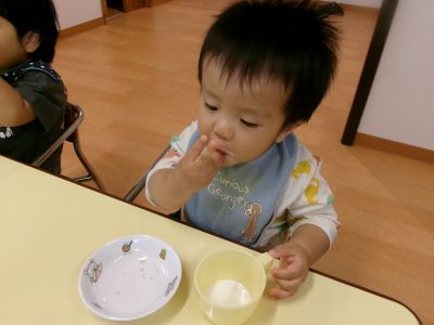 牛乳も一人で上手に飲めるようになりました\(^o^)/