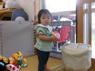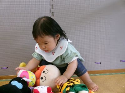 お母さんと離れるときは泣いていたけれど、ぬいぐるみを見つけて遊びだしたSちゃん(*^_^*)