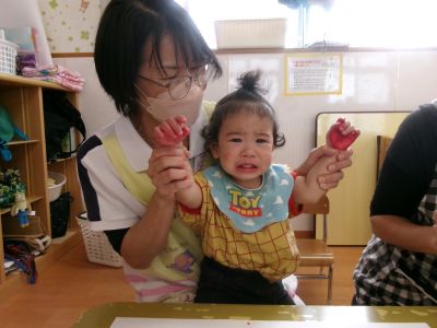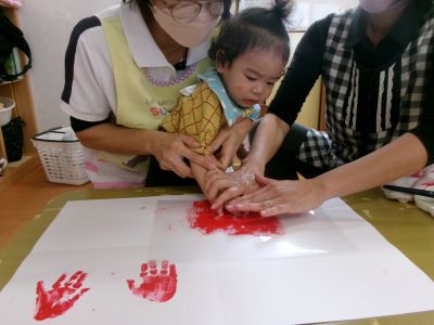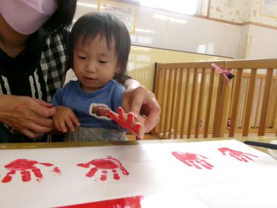 新しいお友達のA君は、始めてだったので涙が見られましたが、上手に手形が取れました!
